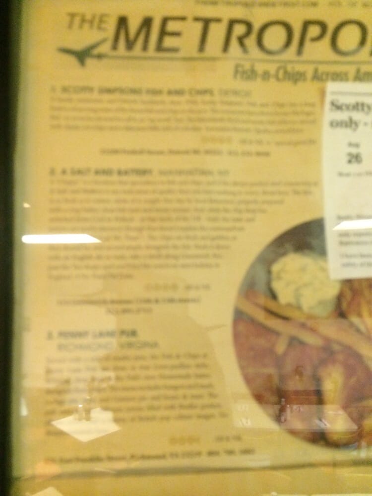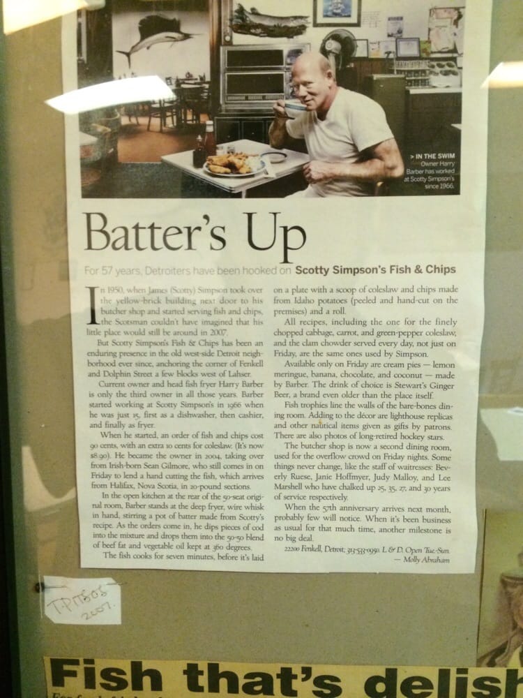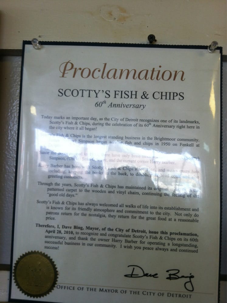 Introducing the menu at Scotty Simpson’s Fish & Chips, a casual and welcoming spot in Detroit, MI where you can enjoy classic fish and chips. Along with their signature dish, they offer side orders like homemade clam chowder, chips, onion rings, cole slaw, and various portion sizes of tartar sauce. The restaurant caters to a diverse crowd with options for takeout, reservations, delivery, and even catering services. With a moderate noise level and TV for entertainment, it's a great spot for groups and families. They also provide amenities like outdoor seating, Wi-Fi, and happy hour specials. Overall, Scotty Simpson's Fish & Chips offers a satisfying and convenient dining experience for those craving traditional seafood fare.